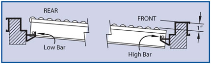 Stops and Load Bars To keep product from flowing right onto the floor, high profile span track requires a stop at the front/picking end of the track. These may be built into the track or they can be added. An optional feature on the rear/input end is an impact load bar, used to absorb impact loading.