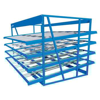 Gravity Flow Rack provides an environment that allows stocking and picking to thrive. The separation between stockers and pickers leads to a variety of benefits including: More Accurate Picking, Greater Number of Facings, Minimal Travel with Easy Reach, and Increased Productivity and Workflow. When compared to static pallet rack, Gravity Flow can provide up to 150% more storage space.