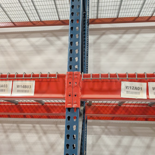 Discounted pricing on used teardrop pallet rack uprights, beams, and wire deck when you order by the truckload. FOB Columbus, OH.