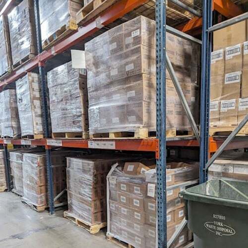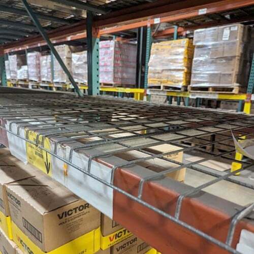 Huge savings on used teardrop pallet rack uprights, beams, and wire deck when you order by the truckload. FOB Mechanicsburg, PA.