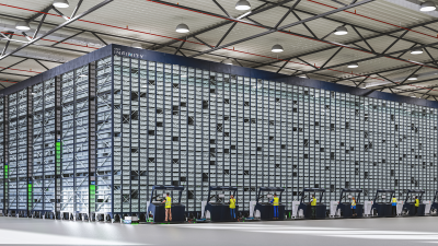 - Vertical buffer modules – Tote-handling systems with an enclosed shelving system that have a mobile mast in the middle. They store, pick up, and deliver totes.