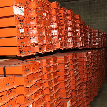 108 x 5 inch used teardrop new style beams for use with new, used, or reconditioned teardrop pallet rack uprights.
