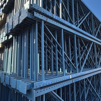 42 x 300 inch used teardrop old style seismic upright with bullnose for use with new or used pallet rack teardrop beams.